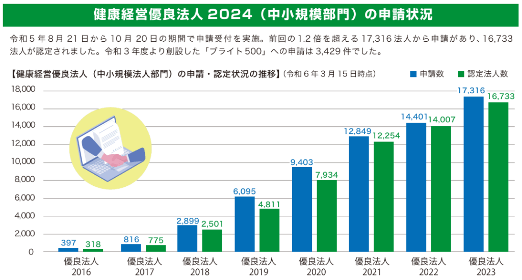 健康経営優良法人制度は年々申請数が増加し、中小企業でも広く取り組みが進んでいます。