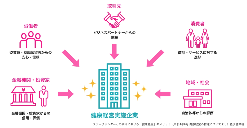 健康経営優良法人に認定されることで、企業は「従業員の健康を大切にする会社」という前向きなブランドイメージを社外に伝えられます。